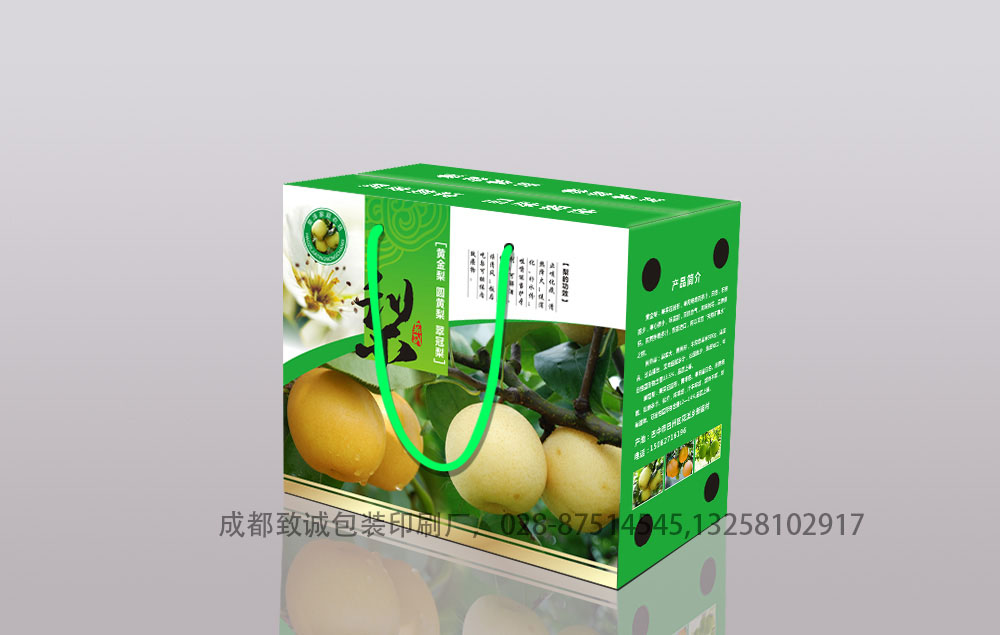 隨著國家提倡鄉村振興,越來越多的人在自己的家鄉興辦農家樂,發展鄉村旅游。其中一部分農戶就種植梨子樹,建立農家樂吸引游客。夏季到來,梨子也逐漸成熟,游客來到農家樂的同時,能體驗親自采摘梨子的樂趣。梨子不僅具有止咳化痰,清熱降火、促消化的作用,其還能補充人體水份,常咀嚼能當護牙劑,可解酒,保肝護臟;飯后吃梨可排體內致癌物等。因此,來到農家樂親自采摘梨子不僅身心愉悅,而且還能帶來健康。我公司為廣大梨子種植戶提供包裝盒設計定制服務,如下這款: