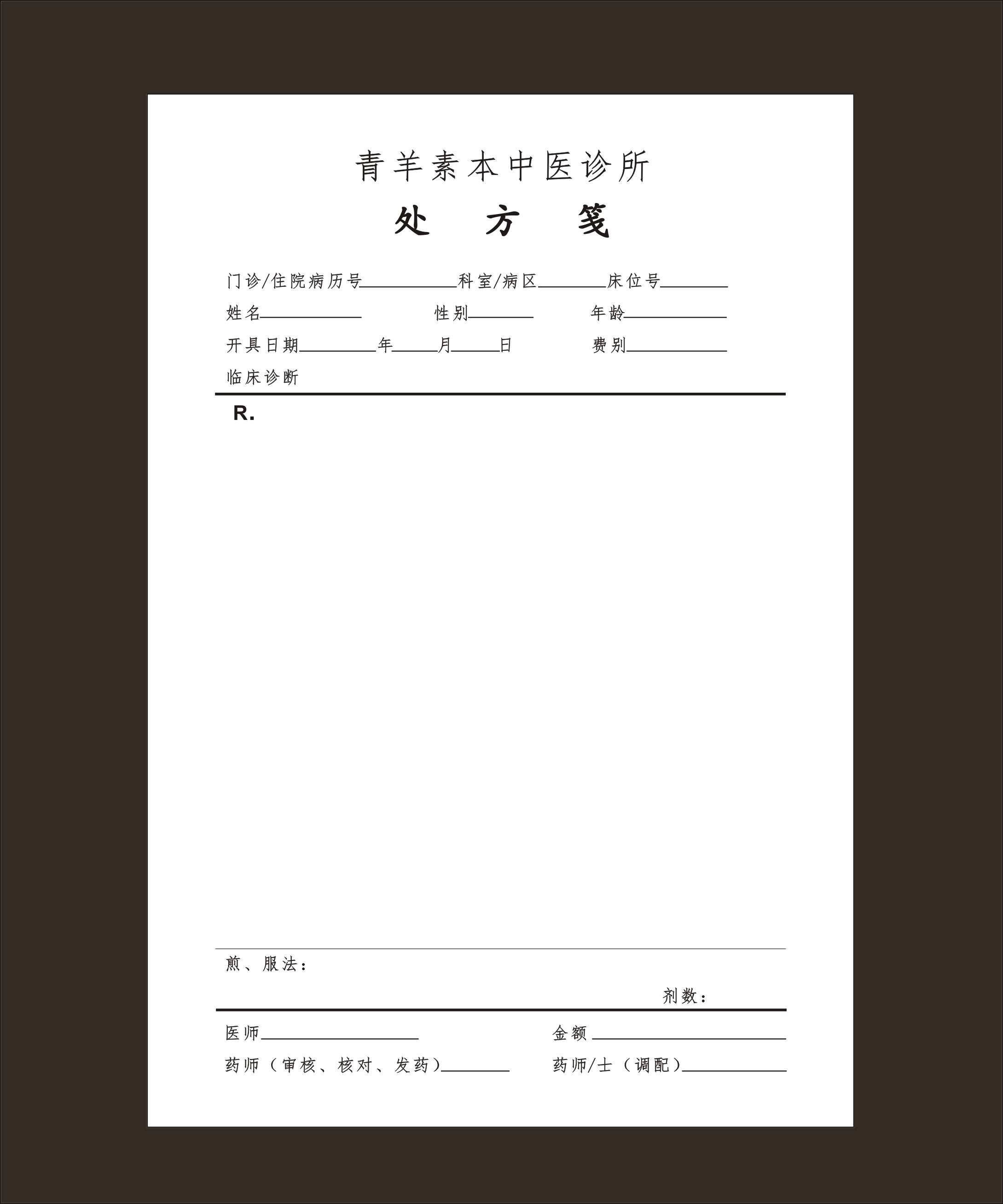 產品名稱:青羊素本中醫診所處方箋(中醫處方單/便簽本)