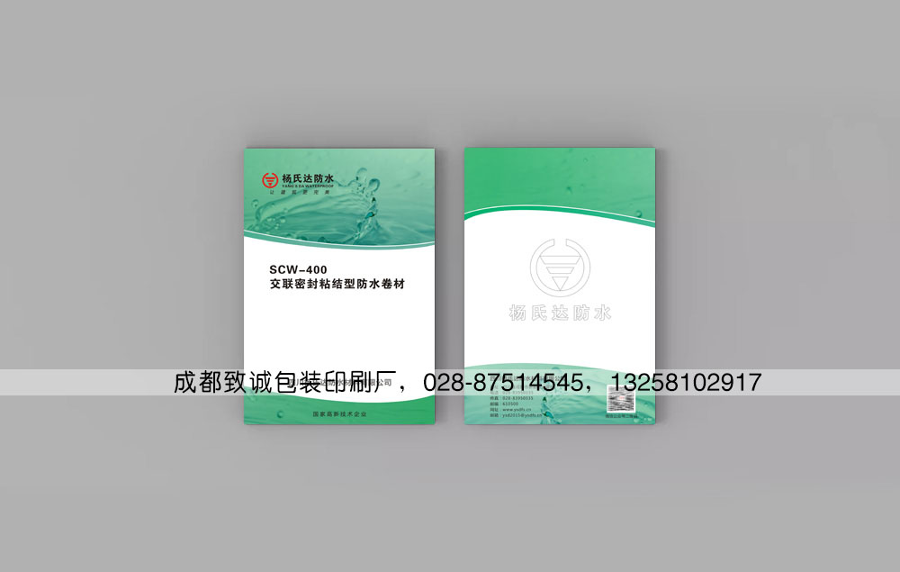 設計理念:防水材料只有產品質量過硬才能在市場站穩腳跟,設計師在版面的設計上采用天藍色與淺綠色背景,給人以成熟穩重的形象,激起漣漪的水花更是與防水材料的產品屬性相吻合。